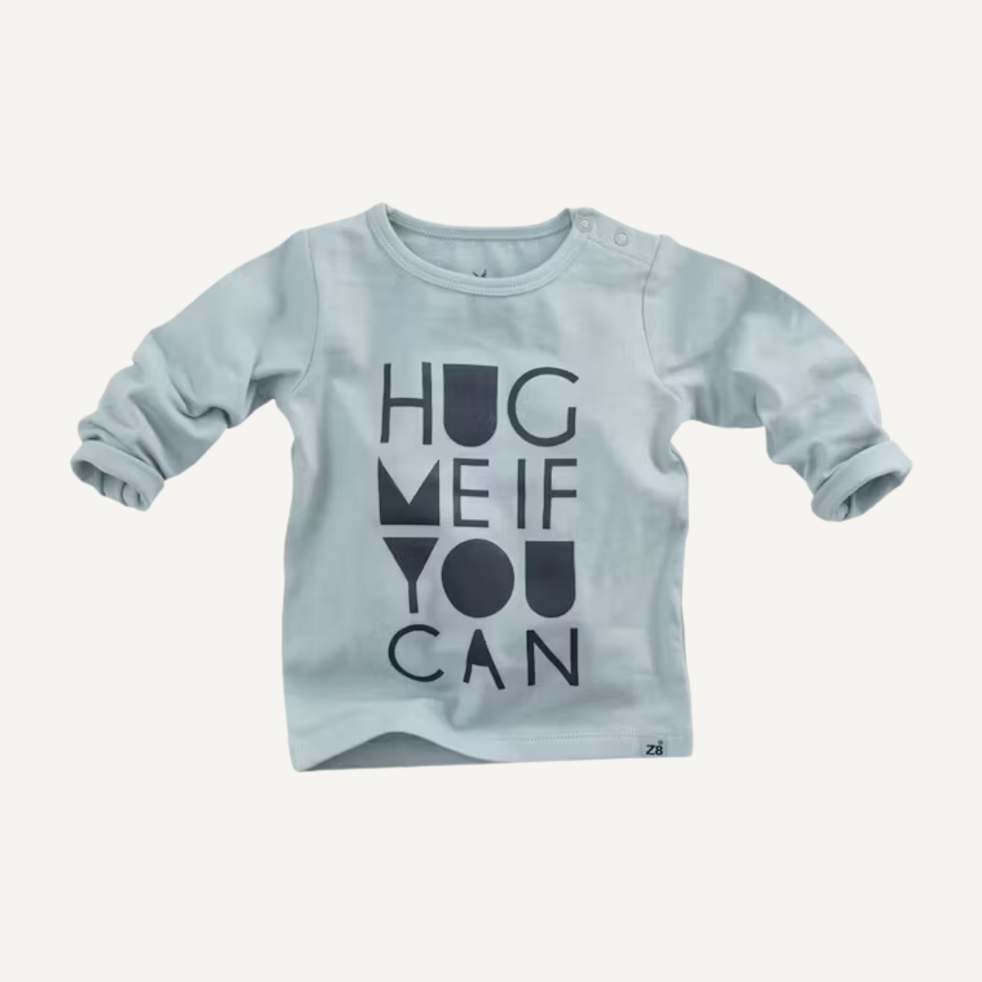 T-shirt vert à manches longues avec le texte « Hug me if you can », une option amusante et moderne pour la mi-saison. Composé à 97% de coton et à 3% d'élasthanne, il offre souplesse et douceur. Un design Z8.