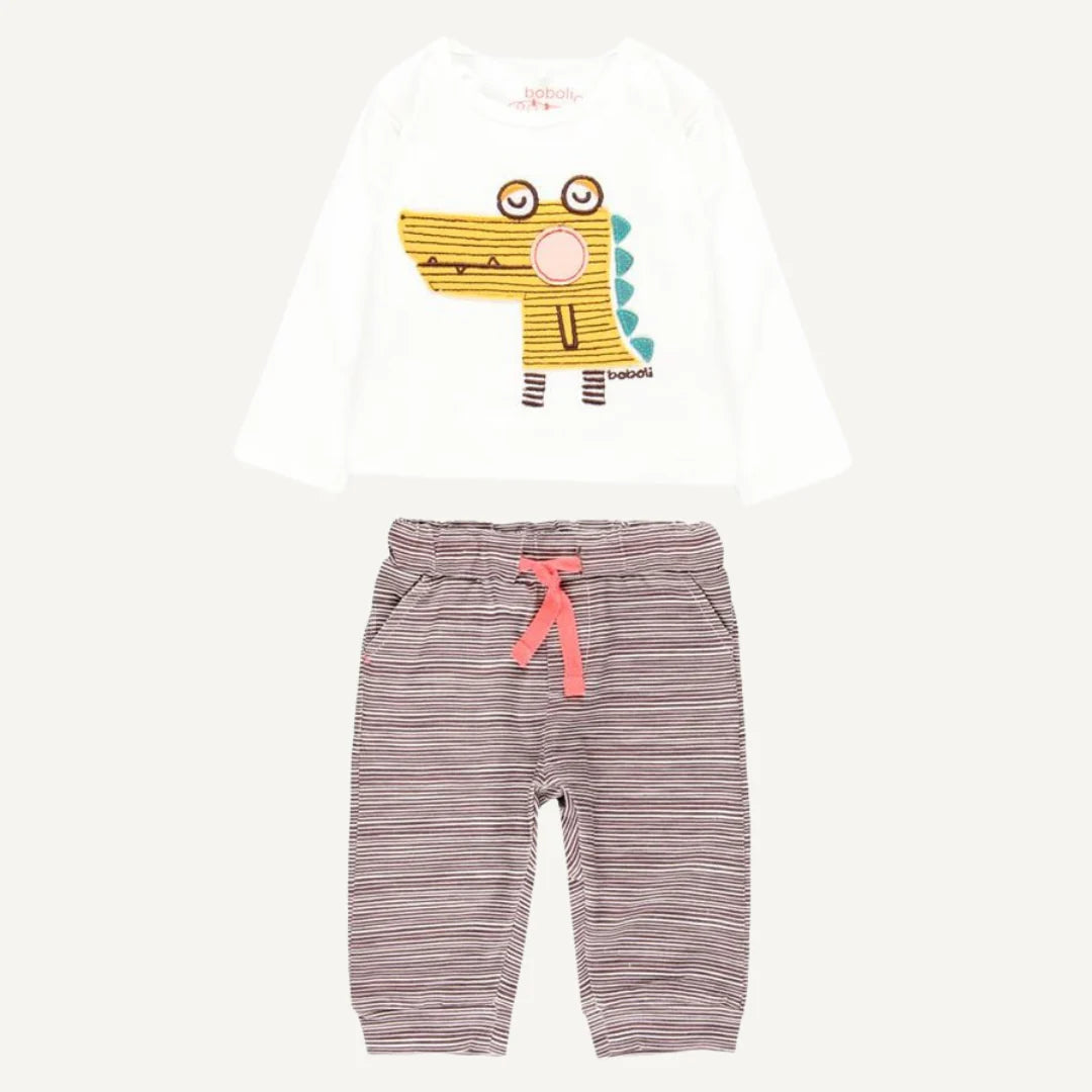 Ensemble bébé - T-shirt blanc à motif crocodile et pantalon rayé Boboli