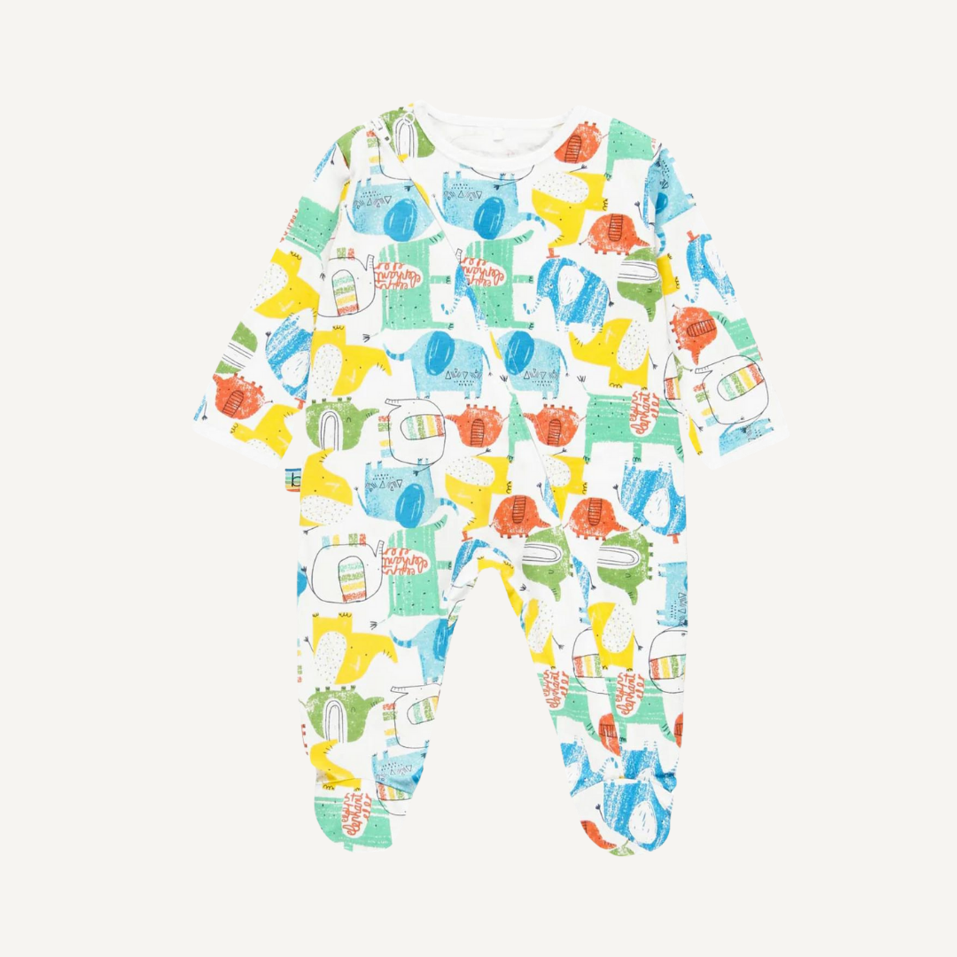Barboteuse blanche à manches longues et imprimé animalier Boboli