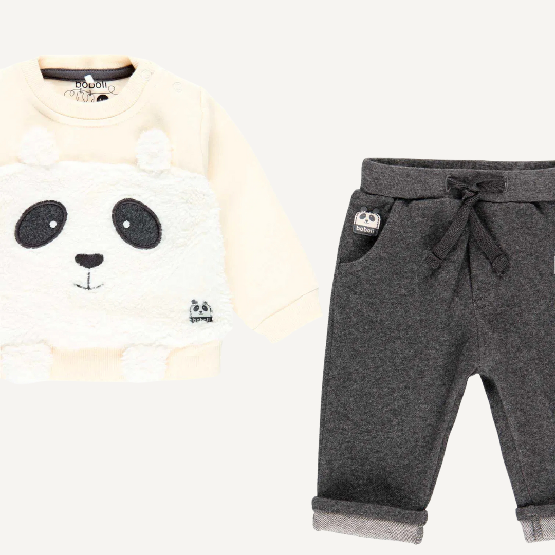 Conjunto de sudadera beige con osito y pantalón gris Boboli