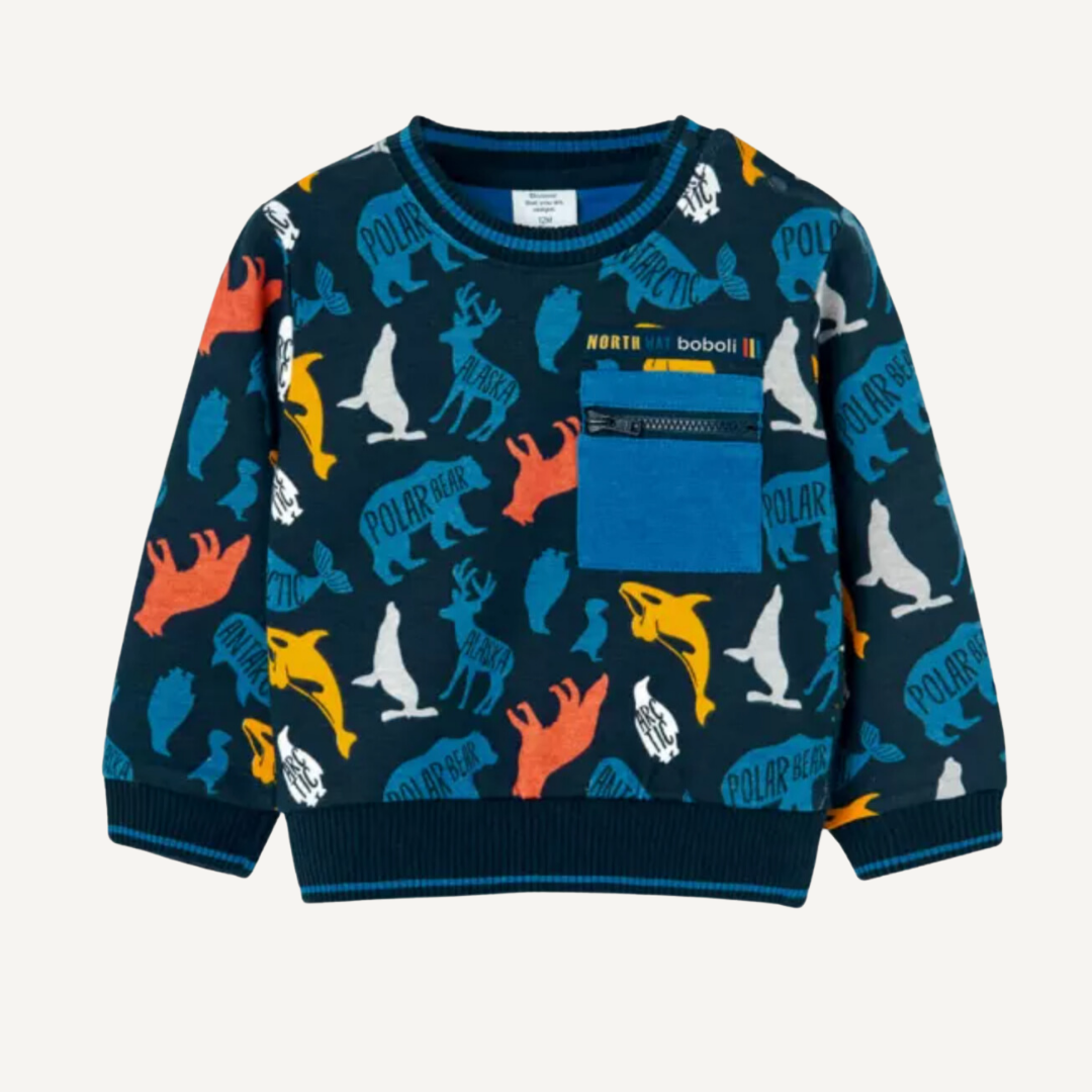 Sudadera Animales polares, inspirada en la naturaleza, ideal para el otoño e invierno. Fabricada en 100% algodón, mantiene el calor sin perder transpirabilidad. Una prenda con el sello distintivo de Boboli.